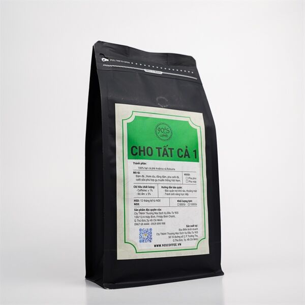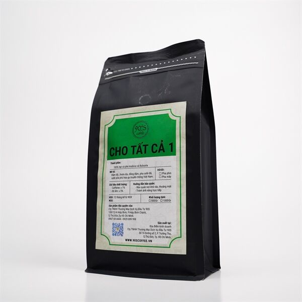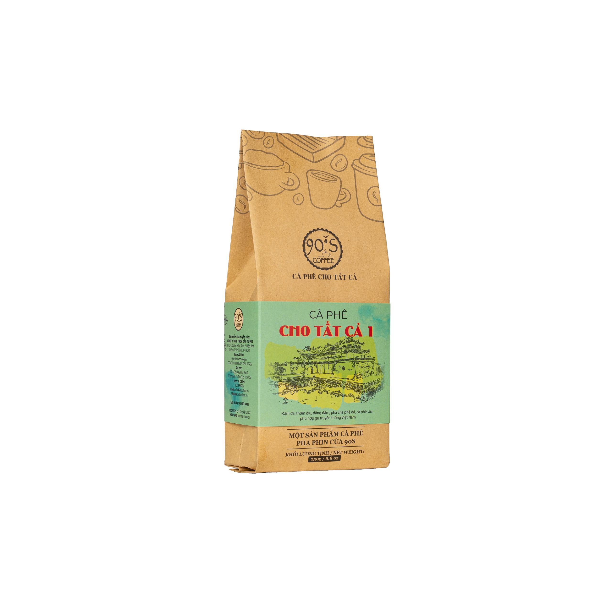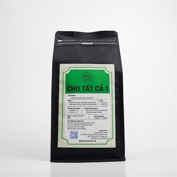 Cà Phê Cho Tất Cả 01 là sản phẩm cà phê rang xay nguyên chất của 90S Coffee Vietnam. Sản phẩm mang tạo vị của ly cà phê nguyên chất đậm đà truyền thống. Thêm vào đó là một chút dư vị đắng nhẹ nhàng để tạo sự khác biệt cho ly cà phê.