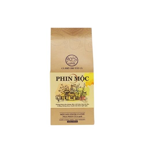 Với mong muốn phát triển dòng sản phẩm pha phin cao cấp, sao cho phù hợp nhất với thị hiếu của người tiêu dùng, 90S Coffee đã nghiên cứu rất kỹ về tỷ lệ, công thức phối cũng như nhiệt độ rang để cho ra mắt Cà phê nguyên chất Phin Mộc. Hoàn toàn đúng như cái tên và mô tả của mình, đây chính xác là dòng cà phê dành cho những ai yêu thích sự nhẹ nhàng và mộc mạc.